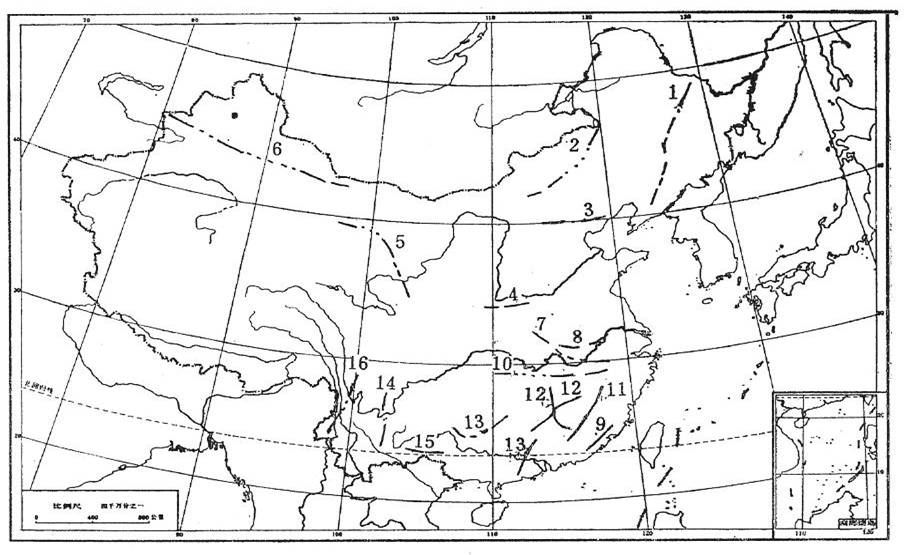 1—吉黑成礦帶;2—內(nèi)蒙—大興安嶺成礦帶;3——燕山成礦帶;4—東秦嶺成礦帶;5—祁連—西秦嶺成礦帶;6—天山—北山成礦帶;7—武當(dāng)—淮陽(yáng)隆起成礦帶;8—下?lián)P子臺(tái)褶成礦帶;9—東南沿海成礦帶;10—江南臺(tái)隆成帶;11—武夷山加里東隆起成礦帶;12—湘贛粵加里東隆起成礦帶;13—湘桂粵海西、印支坳陷成礦帶;14-康滇地軸成礦帶;15—滇桂臺(tái)褶成礦帶;16—三江錫鎢成礦帶。