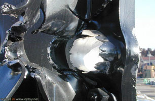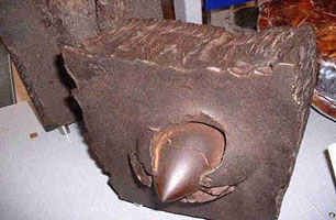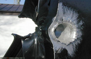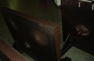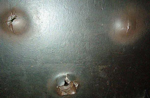 直徑89.9毫米的普通穿甲彈對裝甲造成的花瓣狀破壞