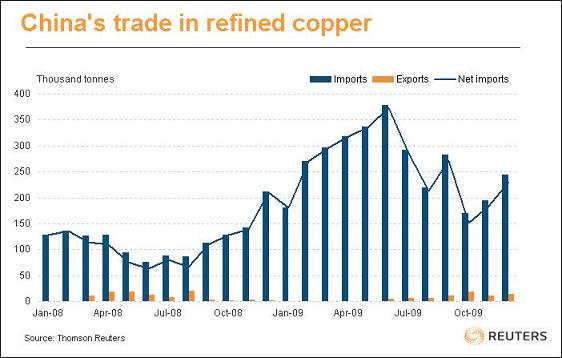 (Andy Home是路透專欄撰稿人,以下內(nèi)容僅代表其個人觀點) 撰稿 Andy Home 編譯 王洋/張若琪/田建華/王冠中 倫敦1月25日電---2009年的全球金屬市場將因深深打上中國龍的印記而載入史冊. 2009年,中國從全球其它地區(qū)吸納了數(shù)量驚人的工業(yè)金屬.以銅為例,中國的進口量相當(dāng)于西方國家供求剩馀的總和. 相比于2008年,2009年中國精煉銅的進口量飆升了173萬噸.因此,倫敦金屬交易所(LME)銅庫存在發(fā)達國家制造業(yè)活動劇烈滑坡時僅呈溫和上升,也就不足為奇了.