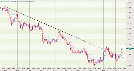 美元全盤走強,英國工業聯合會(CBI)稱英國央行可能需要進一步擴大資產購買規模,預期2010年前經濟活動維持疲弱。歐美股市重挫打壓英鎊,但歐元兌英鎊的跌勢為英鎊兌美元提供部分支持,使得英鎊兌美元總體表現略顯堅挺。上周破敗1.6662的高點使得匯價存在形成潛在雙頂風險,傾向逢高賣出。