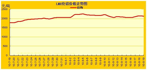 2010.7.19~2010.8.19LME鉛金屬價格漲跌曲線圖