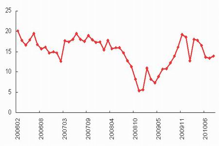 貨幣供應方面,央行數據顯示,8月份新增人民幣貸款5452億元,不僅略高于市場預期的5000億元,也明顯高于去年同期水平。在新增貸款較去 年同期增加的推動下,8月份M2增長19.2%,較上月意外回升1.6個百分點,而8月份的銀行間市場同業拆借利率較上月回落,顯示資金供給并非緊張。展 望四季度的貨幣政策,我們認為,雖然經濟短期似已企穩,通脹壓力增加以及房市量價回升,短期內緊縮預期可能會有所增強,但是外圍經濟仍然存在較大不確定 性,即使緊縮,其力度也會相對有限。