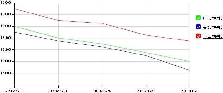圖1:全國主要地區電解錳價格走勢圖(2010.11.22-2010.11.26)