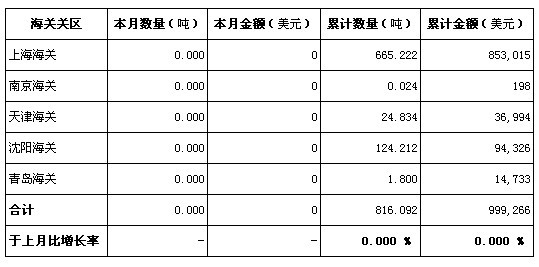 2010年11月份中國海關進口鈦鐵及硅鈦鐵分關統計