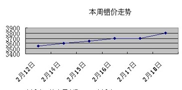 本周銦價出現明顯漲勢,內因是國內原料市場的供應緊缺,外因是歐洲市場銦價的一再上調。而對中國平板電視需求將會上升的預計,以及2010年日本LCD電視產量提高的數據公布,都增強了業內對銦市的期待。市場上尋貨聲一片,報價幾乎每天一變。
