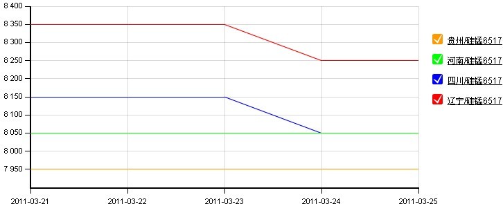 圖2:全國主要地區(qū)錳合金走勢(shì)圖(2011.3.21-2011.3.25)
