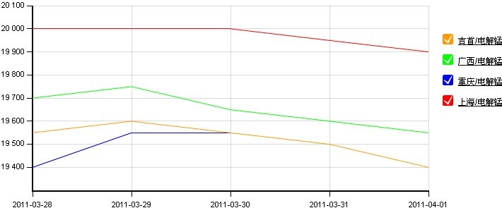 圖1:全國主要地區電解錳價格走勢圖(2011.3.28-2011.4.1)