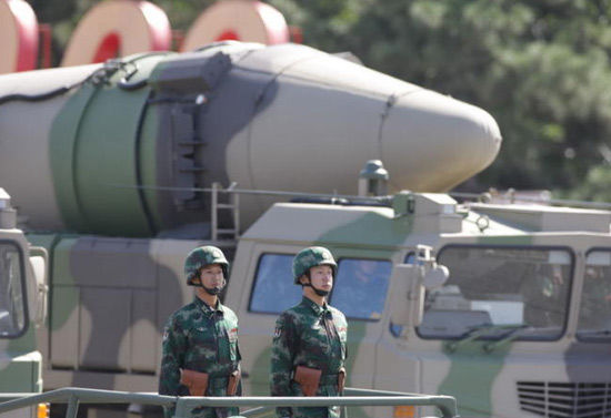 資料圖:參加2009年國慶大閱兵的二炮東風-21C彈道導彈