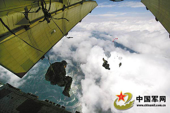 資料圖:汶川救災期間,空降兵部隊在災區進行傘降。劉應華攝