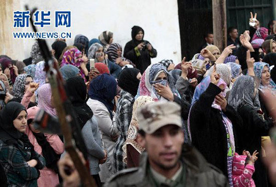 2011年3月31日利比亞民眾為在多國部隊空襲中遇難者舉行葬禮3月30日,在距利比亞首都的黎波里40公里的一處城鎮,利比亞民眾為在多國部隊空襲中遇難的同胞舉行葬禮。新華社/路透