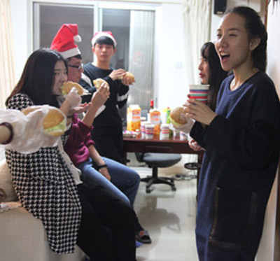 圣誕前夜員工集體制作晚餐,公司董事長韓先生親自為員工烤制火雞,現場氣氛濃厚,結束晚餐后圣誕老人分發禮物,并組織員工免費觀看電影,度過了一個歡樂的圣誕。