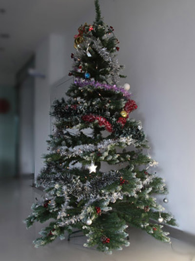 象征平安的平安果擺放在每個員工辦公桌上,裝扮的五彩繽紛的圣誕樹也在閃閃發光,公司給每位員工分派了圣誕帽,更有圣誕老人的扮演者一身紅衣,喜氣洋洋,一派節日氣氛。