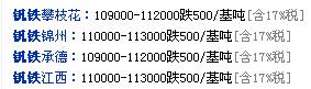 今日國內釩鐵小幅下跌,雖然跌幅不大,但是部分地區跌破了 11 萬的整數關口還是十分值得去關注的,目前的市場報價十分混亂,從 10.9-11.4 萬的價格都有人再報,成交比前幾日稍有好轉,原因在于下游鋼材市場有所拉漲,部分貿易商覺得后市還是有好轉希望,所以有了入市購貨的打算并付諸以實施,但是筆者認為在鋼廠采購疲軟,招標價格偏低的情況下應謹慎購貨。