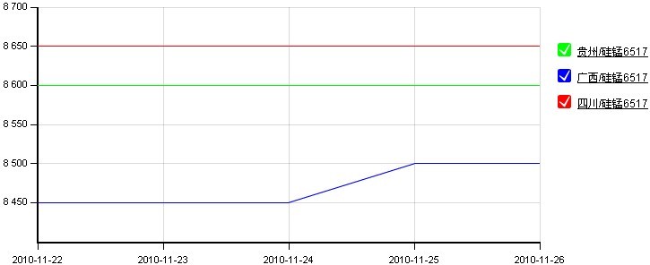 圖2:全國主要地區硅錳合金走勢圖(2010.11.22-2010.11.26)