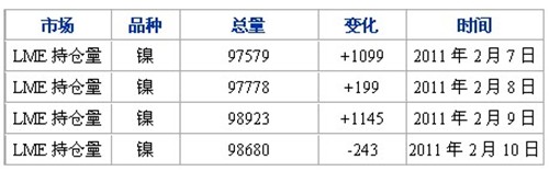 3.全球最大的鎳生產(chǎn)商俄羅斯NorilskNickel公司擬將今年鎳產(chǎn)量提高至30-31.5萬(wàn)噸,該公司2010年的鎳產(chǎn)量為297,329噸,同比做多增長(zhǎng)5%。