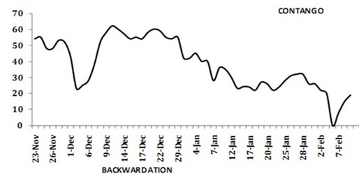圖7:倫鎳三月期貨對(duì)現(xiàn)貨升貼水變化