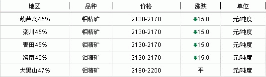 3月2日 國內主要地區鉬精礦市場最新價格參考